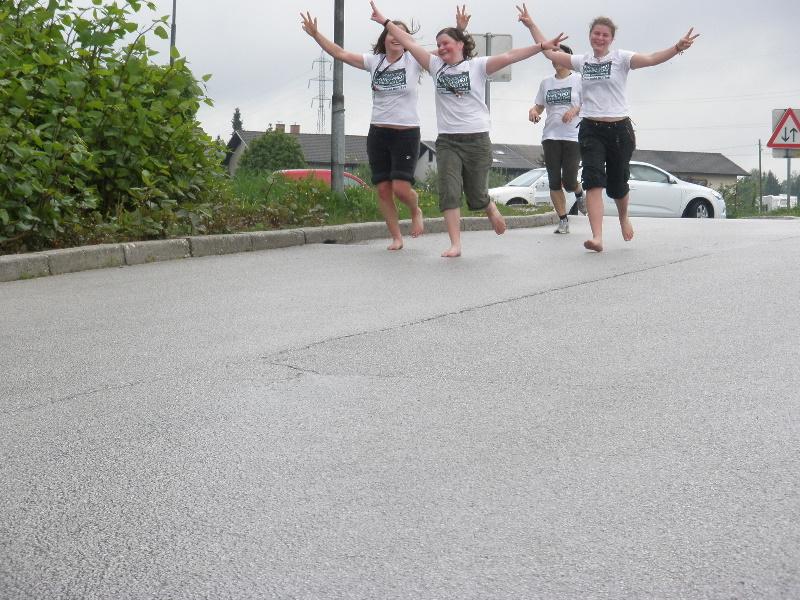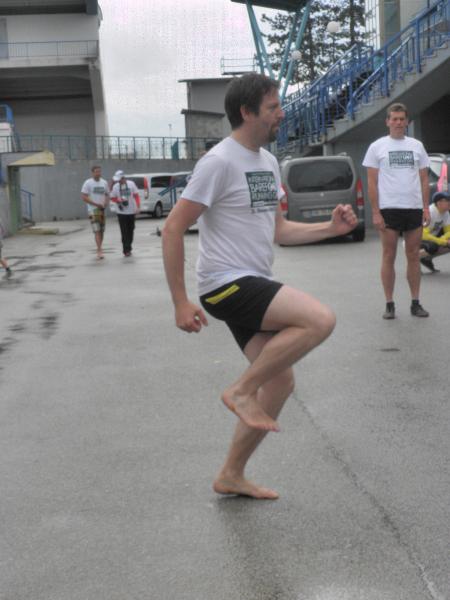 Naš bosonogi maratonec, Marko Roblek, je pred tekom za vse tekače pripravil šolo bosega teka, kjer smo se naučili pravilne tehnike teka, naredili nekaj bosonogih tekaških vaj in odtekli poskusni krog.